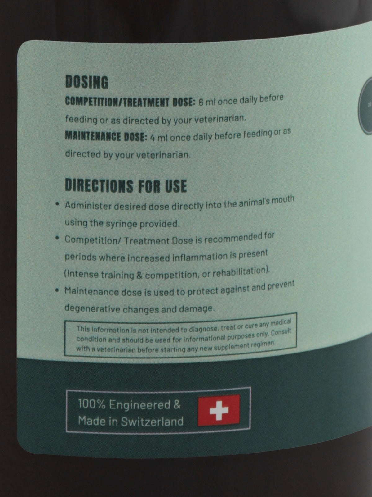 - Administer the desired dose directly into the animals mouth using the syringe provided